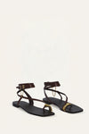Minimalist leather sandals crafted in 100% cow leather. Designed with delicate ankle straps and a golden detail at the toe, they bring effortless sophistication to warm-weather dressing.