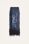 Feathered sequins add a touch of allure, making it an ideal choice for special occasions. The back zipper closure allows for easy wearing and removal.