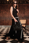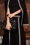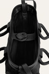 Crafted in 100% cow leather, this structured tote bag features contrast stitching, tubular handles, and a detachable strap for versatile styling. Designed with an open top and button loop fastening, it balances practicality with refined craftsmanship.