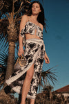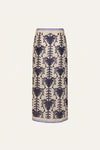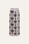 A wrap skirt cut in light linen, in ecru and navy. Defined by its straight silhouette and a JO print. Style with the matching top to complete the set.
