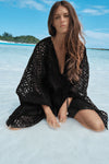 A flowing kaftan cut in embroidered cotton. Designed in black with wide sleeves and a deep V-neckline, it’s a lightweight cover-up that layers effortlessly over swimwear.