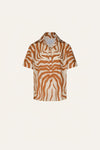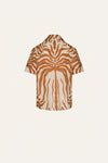 A short-sleeve shirt cut in light poplin. Defined by its oversized fit and JO print, it offers ease and versatility, perfect for layering over swimwear or pairing with tailored bottoms for a statement look.