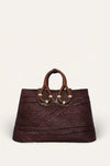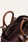 A handwoven Iraca palm tote elevated with structured leather handles. Its generous size and artisanal construction make it the perfect companion for both everyday wear and getaway escapes. A statement accessory that pairs seamlessly with dresses and separates from the collection.