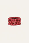 A handwoven set of bangles crafted from Tetera palm. Each piece showcases artisanal weaving techniques, making them the perfect statement accessories to complement looks across the collection.