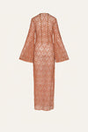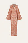 A floor-length dress in embroidered cotton, featuring wide, flowing sleeves. The geometric pattern adds texture and depth, while its straight silhouette moves with ease. Designed for versatile wear, it works effortlessly as a cover-up or styled for warm-weather gatherings.