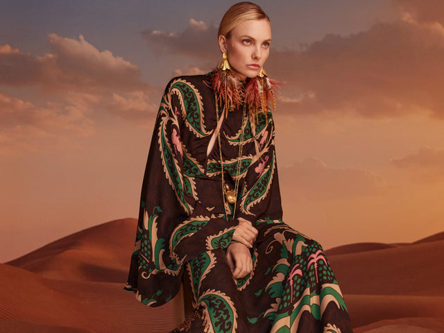 The FW'25 collection is a celebration of contrasts, blending rich textures, bold craftsmanship, intricate details, and effortless elegance. It narrates a captivating story of mystique, blending nature and symbolism effortlessly.