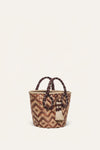 This mini bag is crafted by Colombian artisans using natural Tetera palm, showcasing a striking geometric pattern that highlights their expert weaving techniques. The silk-wrapped handles and tassel details enhance the design. This piece is a standout accessory, sure to make a statement.