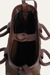 Crafted in 100% cow leather, this structured tote bag features contrast stitching, tubular handles, and a detachable strap for versatile styling. Designed with an open top and button loop fastening, it balances practicality with refined craftsmanship.