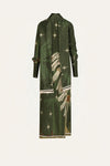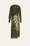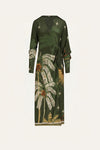 Ankle-length dress in silk crêpe de chine featuring a beautiful JO print. Designed with a plunging neckline and long sleeves. Styled with a matching scarf for an elevated coordinated look that transitions effortlessly from day to night.