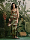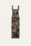 A midi dress crafted in shiny jersey, featuring a square neckline and a softly draped waist detail that wraps across the skirt. Perfect for daytime styling with flat sandals and accessories from the collection.
