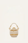 A sculptural bucket bag crafted in handwoven werregue palm with copper alloy detailing. Designed as a unique statement piece, it brings texture, rhythm, and artisanal character to the look. Carry it to elevate daytime silhouettes with a refined yet expressive accent drawn from the Magdalena collection.