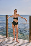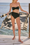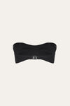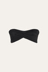 A classic Johanna Ortiz style, this sleek black bandeau bikini top features a twist-front design. Perfect for sunbathing or pairing with your favorite swim bottoms, it offers a timeless and versatile look for beach or poolside days.