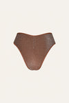A high-rise bikini bottom with ruched detailing and a signature bead accent. A classic Johanna Ortiz silhouette, designed for mix-and-match styling with coordinating bikini tops.