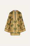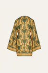 A tunic crafted from light linen, featuring wide sleeves and a relaxed silhouette. Adorned with shell details along the neckline, it blends artisanal charm with ease, making it perfect for warm-weather escapes and effortless layering.