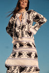 A tunic crafted from light linen, featuring wide sleeves and a relaxed silhouette. Adorned with shell details along the neckline, it blends artisanal charm with ease, making it perfect for warm-weather escapes and effortless layering.